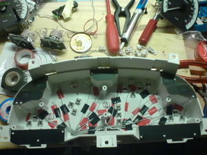 In meiner kleinen Wekstatt gehen viele Dinge vor sich. Neben den leisen Zischen meines Kompressors, hört man viele andere Geräusche. Unter anderen verarbeite ich diverse Gewebe zu interessanten Sichtlaminierungen, oder ich stelle Innenraumverkleidungen aus GFK her. Manchmal hört man auch das leise Zischen eines Lötkolbens, wenn ich für Auto's die Beleuchtung des Cockpit's in einer anderen Farbe gestalte. Also viele Dinge rund ums Auto...